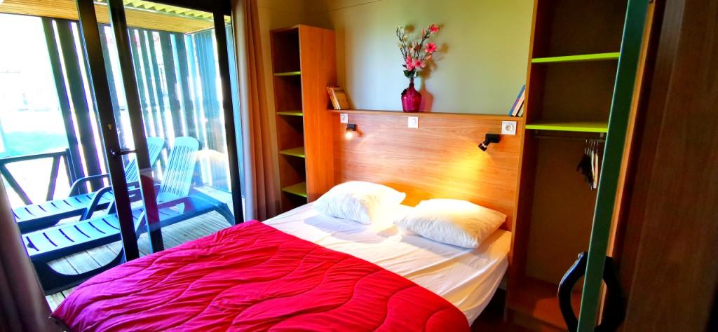 Le Chalet Ottawa offre de grands espaces de vie, agréables pour accueillir jusqu’à 6 personnes : Chambre parentale ouverte sur la grande terrasse couverte, salle d’eau avec double vasques et douche XL…