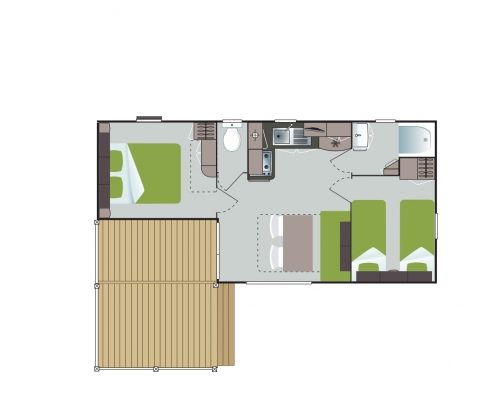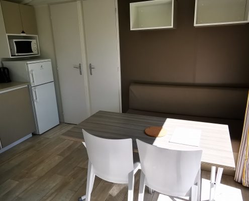 Le Cottage Loggia dispose d’une grande pièce à vivre, agréable et fonctionnelle, idéale pour partager des moments conviviaux. Sa large baie vitrée apporte une belle luminosité et donne une réelle sensation de continuité avec l’extérieur.