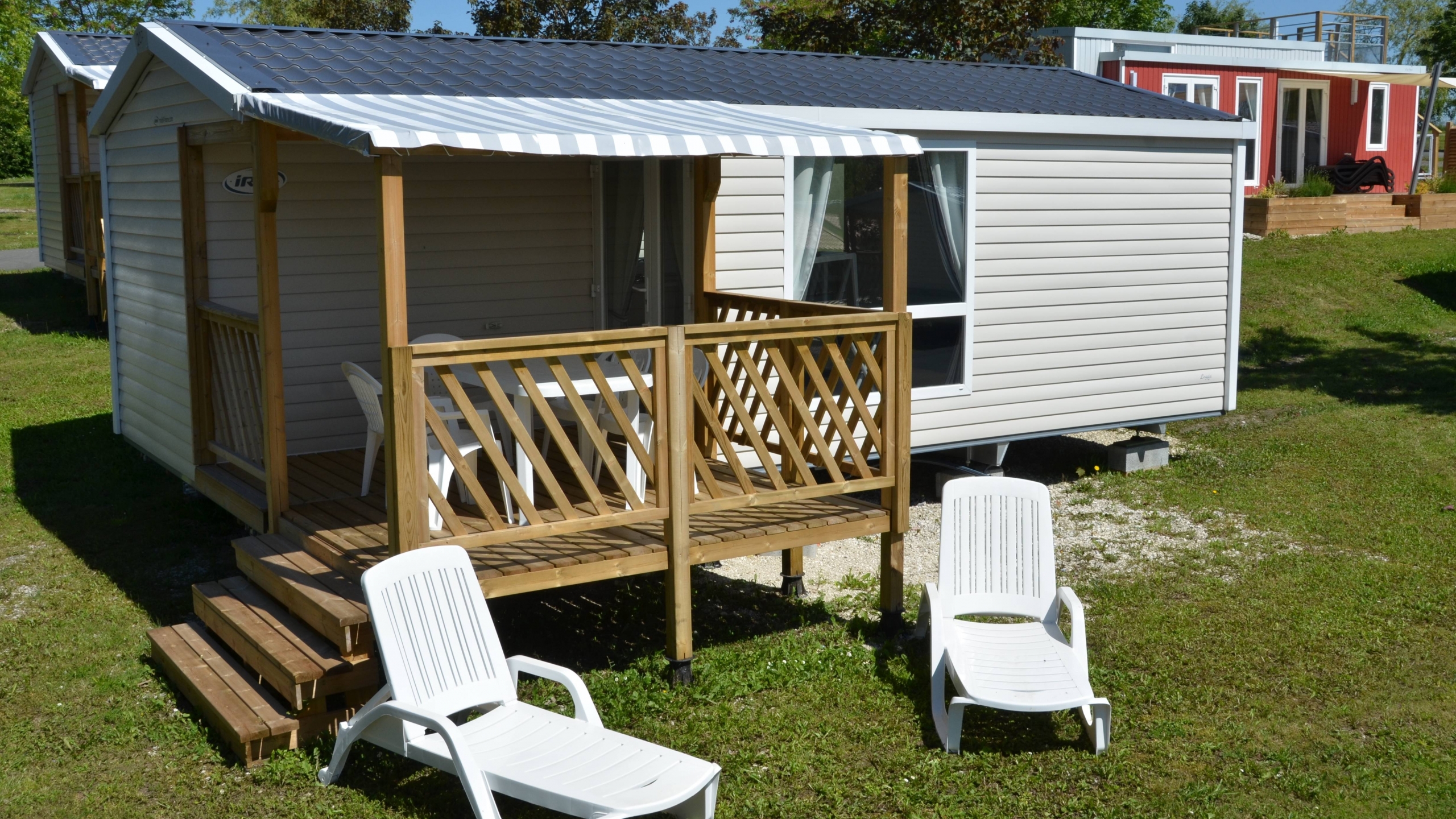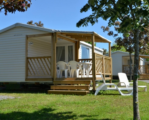 Grâce à sa terrasse couverte, profitez pleinement de l’environnement naturel du camping, pour les repas ou les instants de détente, quelles que soient les conditions météo, au Camping du Bois de Reveuge, dans le Doubs.